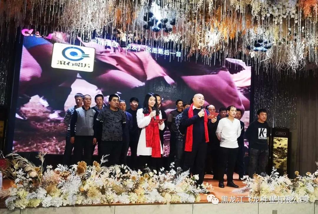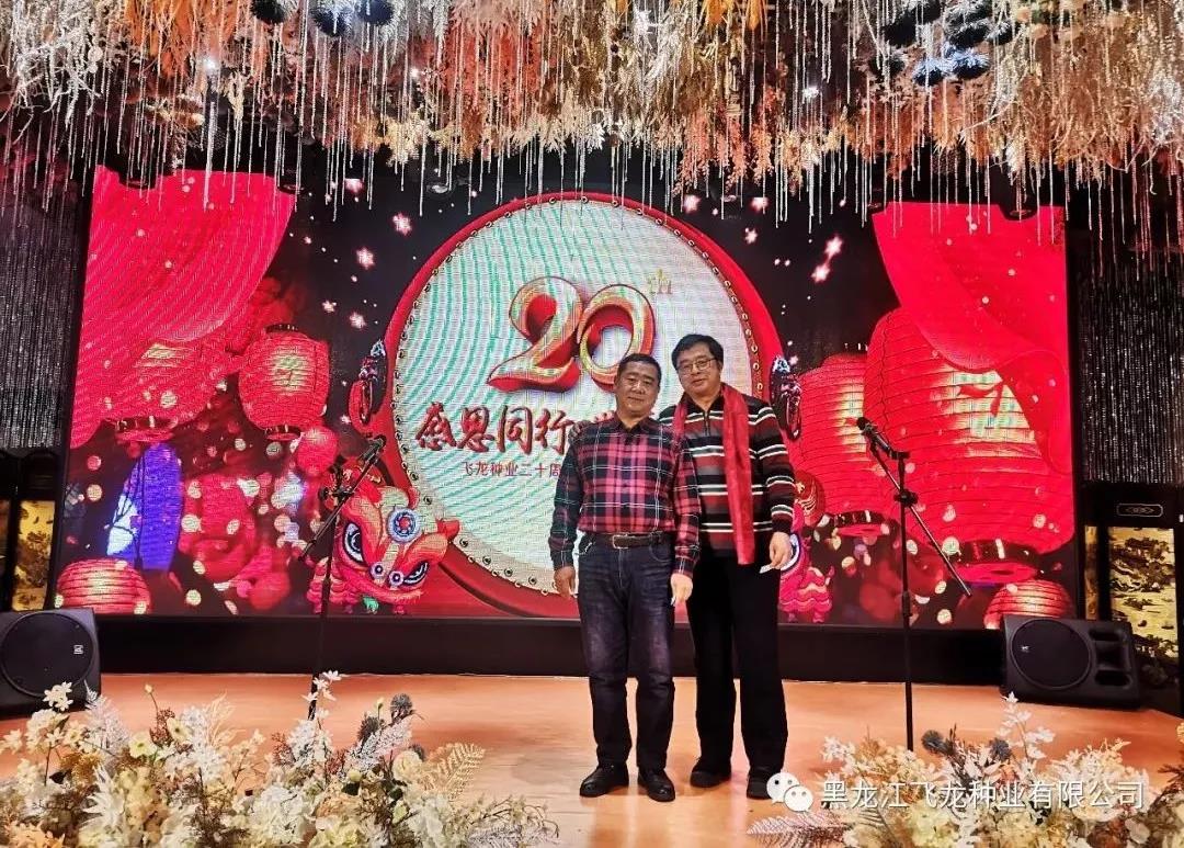 風(fēng)雨砥礪,歲月如歌,2020年1月1日,黑龍江飛龍種業(yè)有限公司20周年慶典暨元旦聯(lián)歡會圓滿舉行,全體飛龍人與各科研院所專家、以及來自各地的七十多位種地大戶歡聚一堂,共度佳節(jié)。其中到場的嘉賓分別有:飛龍種業(yè)首席大豆育種專家杜維廣研究員(左6)、牡丹江農(nóng)科院任海祥院長(右4)、農(nóng)墾科學(xué)院大豆所王德亮主任一行(左4)。